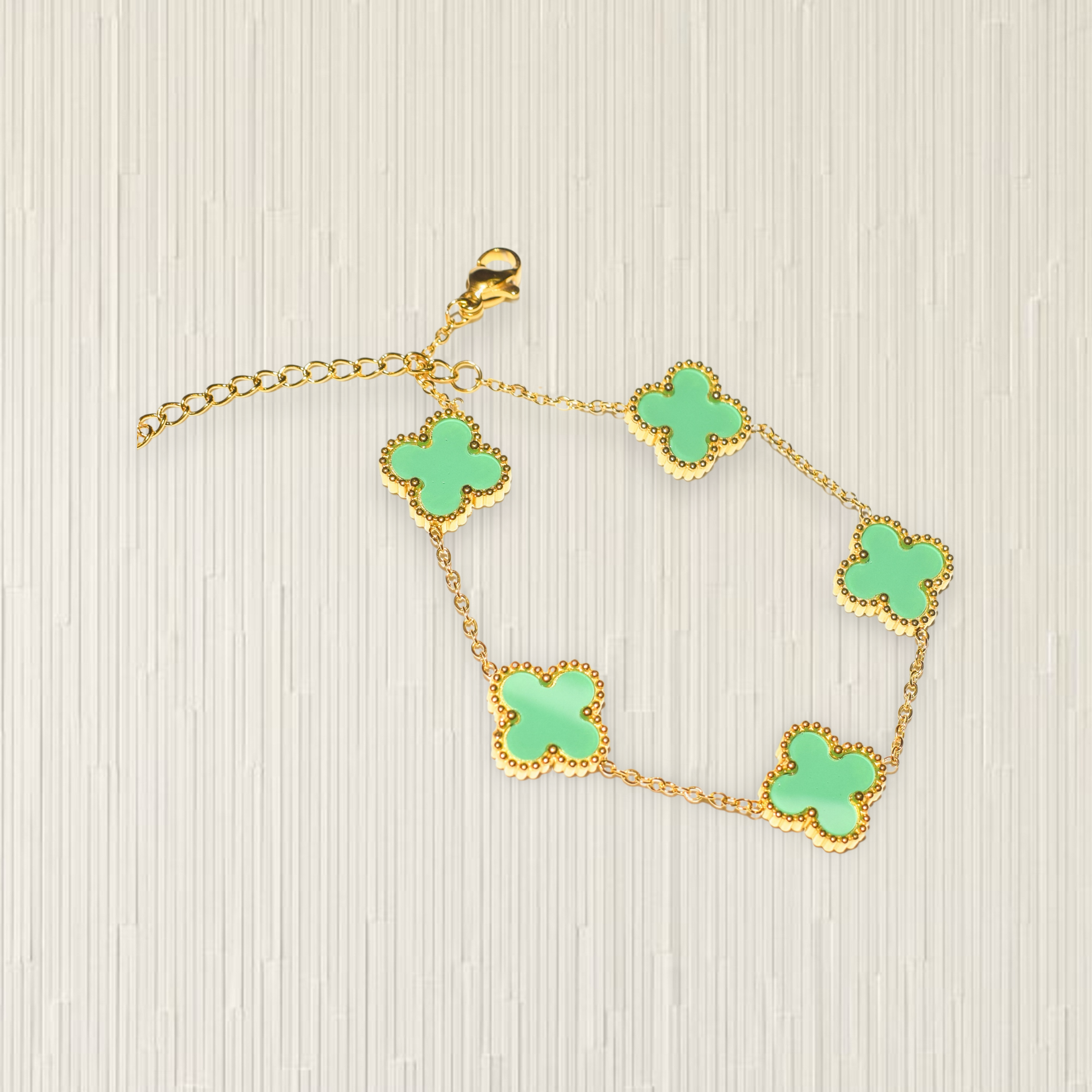 Add a touch of charm and elegance with our Timeless Clover Bracelet, symbolizing luck and love. Crafted with precision and finished in a radiant green color, this delicate piece is perfect for daily wear or special occasions. A timeless accessory that pairs beautifully with any look.