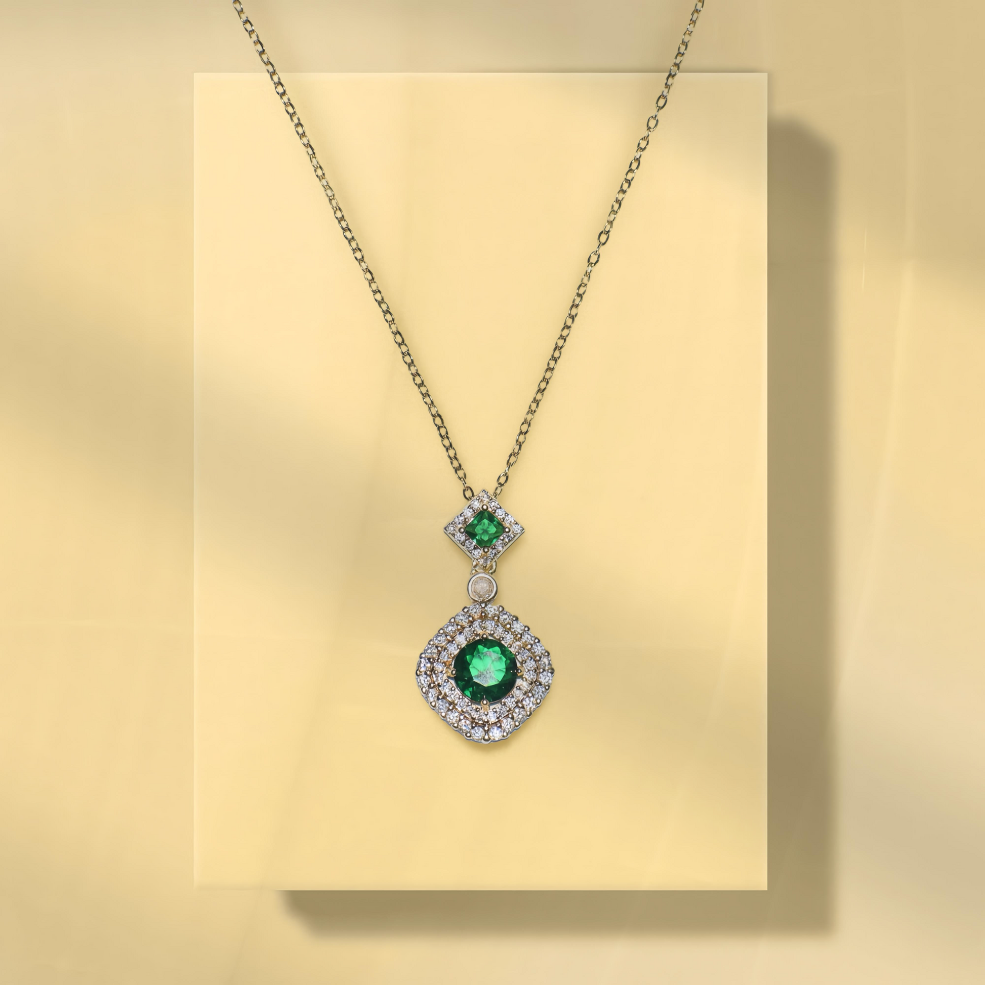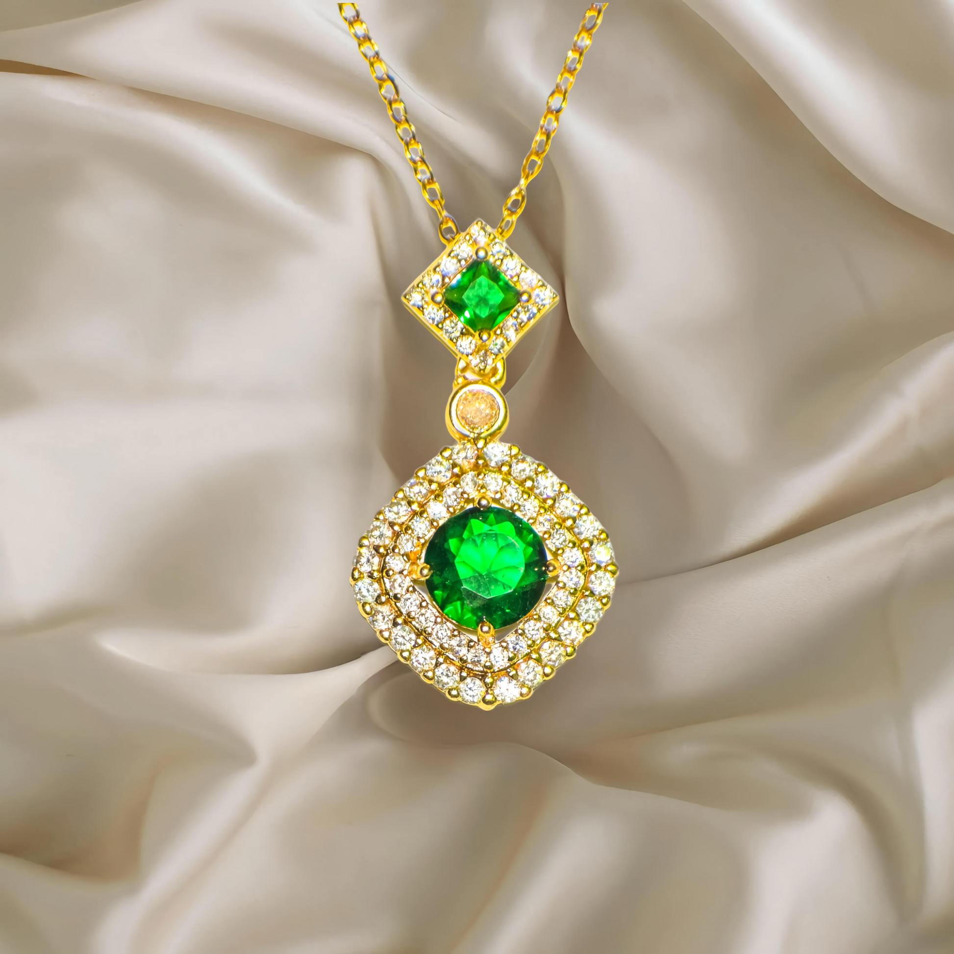 Turn heads with this striking green stone neckpiece, designed to add a pop of elegance and color to any outfit. Set in a radiant gold-toned finish, the vibrant green stone reflect timeless beauty and sophistication. Perfect for festive occasions or special evenings, this piece brings a bold yet graceful charm to your jewelry collection.